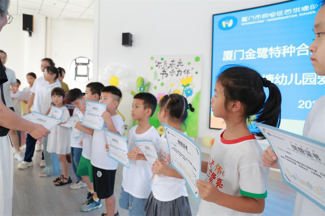 调研组充分肯定厦门金鹭“爱心暑托班”的工作,认为此次暑托班设施设备完善、规章制度健全、课程设置丰富、安保措施到位。与此同时,调研组在园区多功能室为孩子们颁发第一期“优秀学员证书”与“结业证书”。