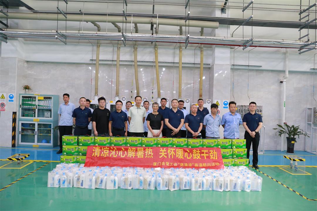 【概要描述】 为切实做好防暑降温工作,保障一线职工健康安全,2025年8月1日上午,厦门市制造业工会联合会副主席、市机械能源电子工会工委主任施素疆带队,在公司副总经理、工会主席邹建平等人的陪同下,深入切削工具事业部可转位刀具制造部等生产一线高温作业现场,开展“送清凉”高温慰问活动,为炎炎夏日里坚守岗位的劳动者送来防暑降温物资和暖心关怀,为奋斗者撑起一片“绿荫”, 向所有不惧“烤”验、挥汗如雨、恪尽职守的一线职工们表达深切关爱。