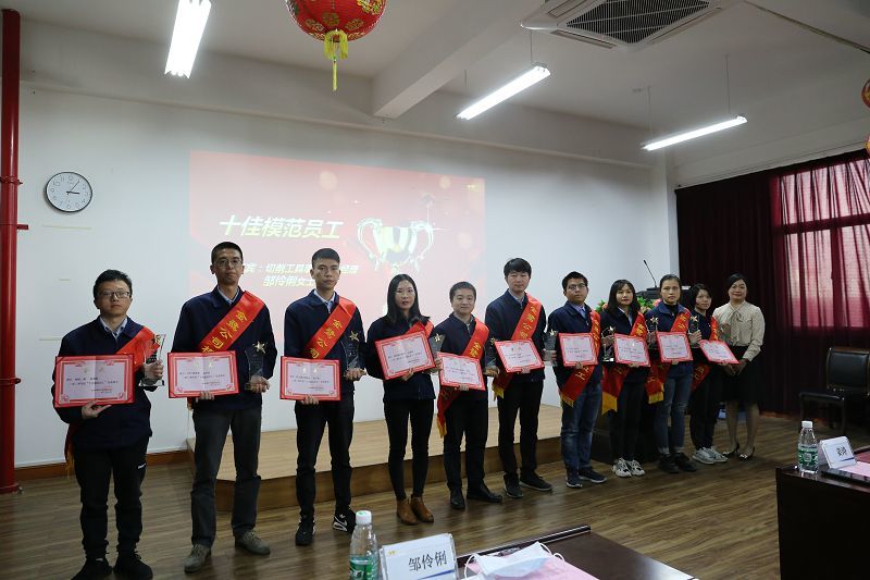 公司董事长吴其山为获得“十佳能工巧匠”、“先进班组”以及“标兵班组”的先进集体及个人颁奖。公司总经理姜涛为获得“优秀管理人才”、“营销之星”的先进个人颁奖。合金事业二部总经理张守全、切削工具事业部总经理邹伶俐分别为获得“优秀科技人才”、“十佳模范员工”的先进个人颁奖。