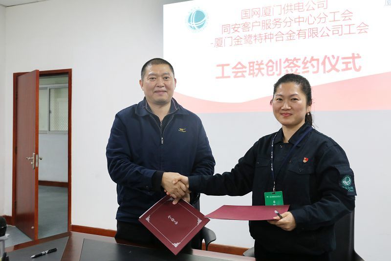 1月28日,国网厦门供电公司同安客户服务分中心分工会与我司工会联创签约仪式在同安厂区隆重举行。